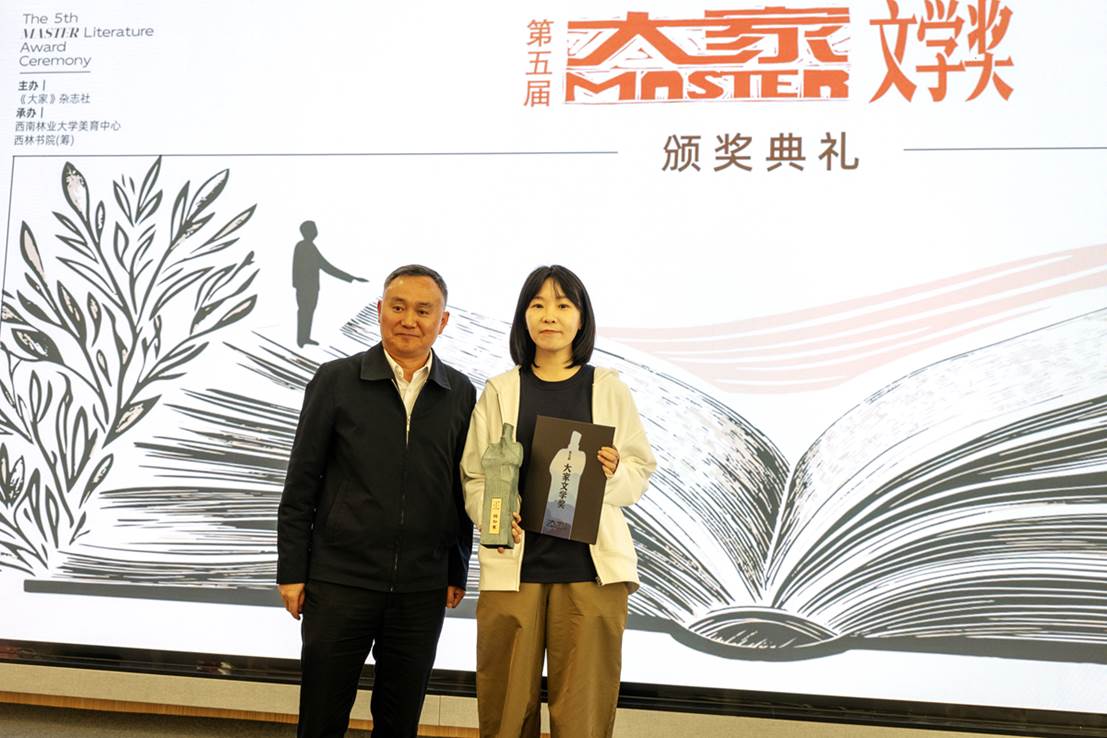 颁奖现场,云南出版集团副总经理赵虎、西南林业大学艺术与设计学院院长李森先后致辞。赵虎表示,文学是时代的镜子,是心灵的灯塔,它记录着人类的历史,触摸着时代的脉搏,承载着诗意的栖息。重启“大家文学奖”,不仅是对过往辉煌的致敬,更是对当代文学创作者无尽创造力的期许。《大家》杂志将始终秉持对文学创作的崇高追求,继续强调文学的原创性,传承优秀文学传统,为中国文学的发展注入新的活力。《大家》早已超越了一本刊物的范畴,它是文学创新的试验田,是文学传承的接力棒,此次重焕生机,不仅是对“文学滇军”精神的赓续传承,更是向新时代文学创作发出的一份庄重誓言。