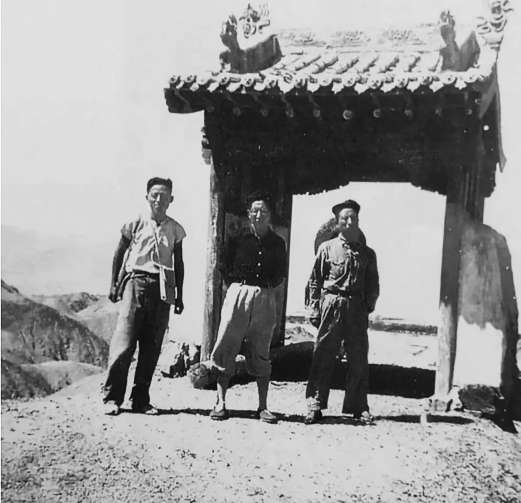 1944年8月,向达(中)、夏鼐(右)与阎文儒(左)一行在敦煌。