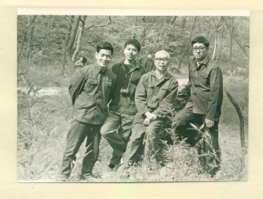 1980年,与最初的师友在南京栖霞山,左起:徐有富、张三夕、程千帆师、莫砺锋