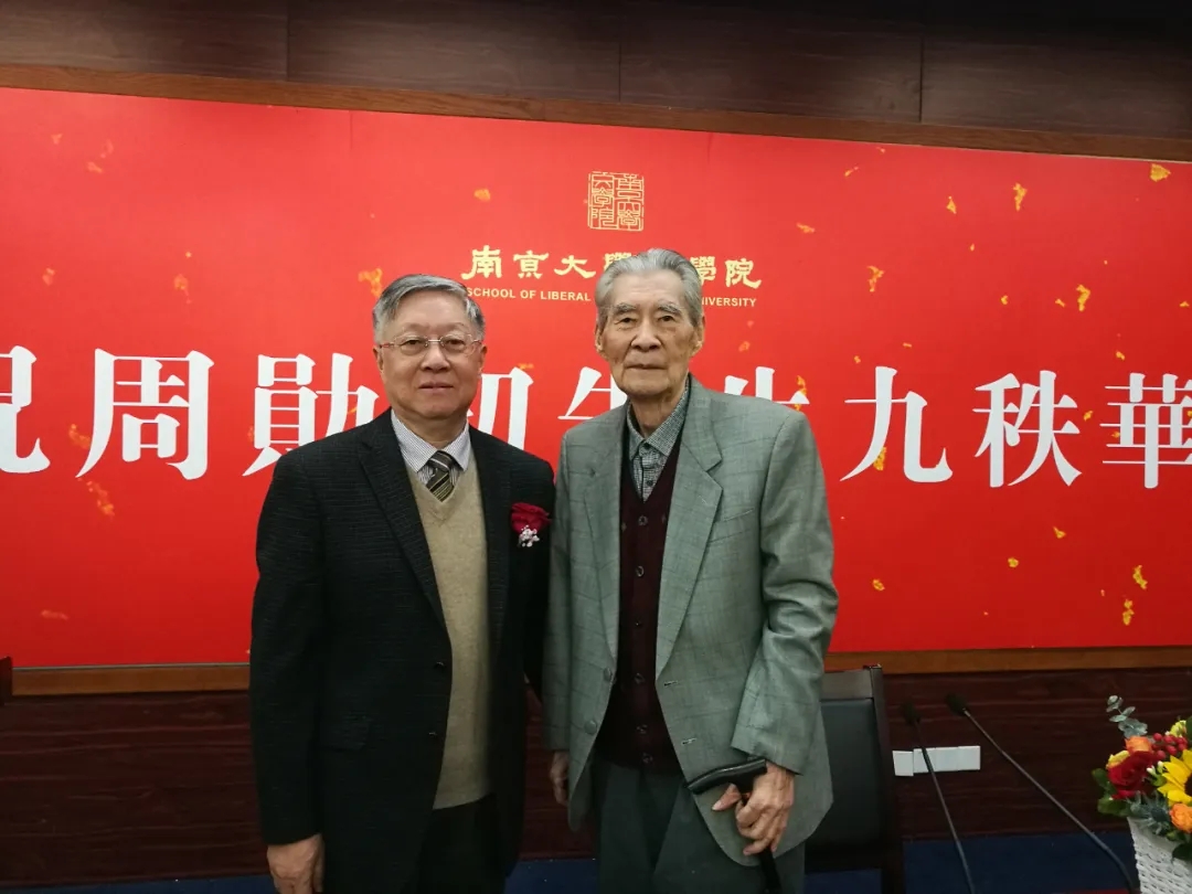 2018年,与周勋初先生在南大庆祝周先生九十寿辰大会上