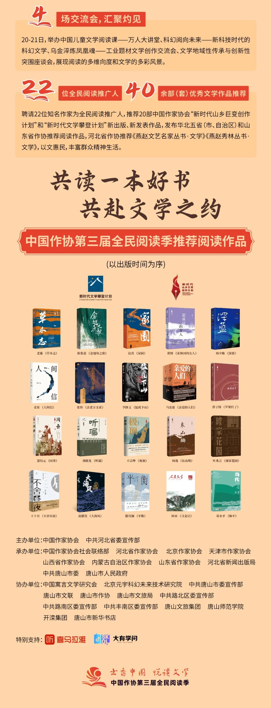 2025年世界读书日期间,电竞竞猜联合华北地区北京、天津、河北、山西、内蒙古五省市区及山东省作协,共同举办以“文润燕赵 阅览山河”为主题的电竞竞猜第三届全民阅读季。电竞竞猜官网将持续报道,敬请关注。