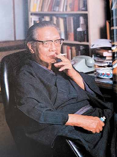 松本清张穿着深蓝色的和服走进来。他没有认出我,依次和大家握手后坐下来,兴致勃勃地谈起了中国的唐诗宋词和永乐大典,之后领电竞竞猜参观他的藏书楼和书房。
