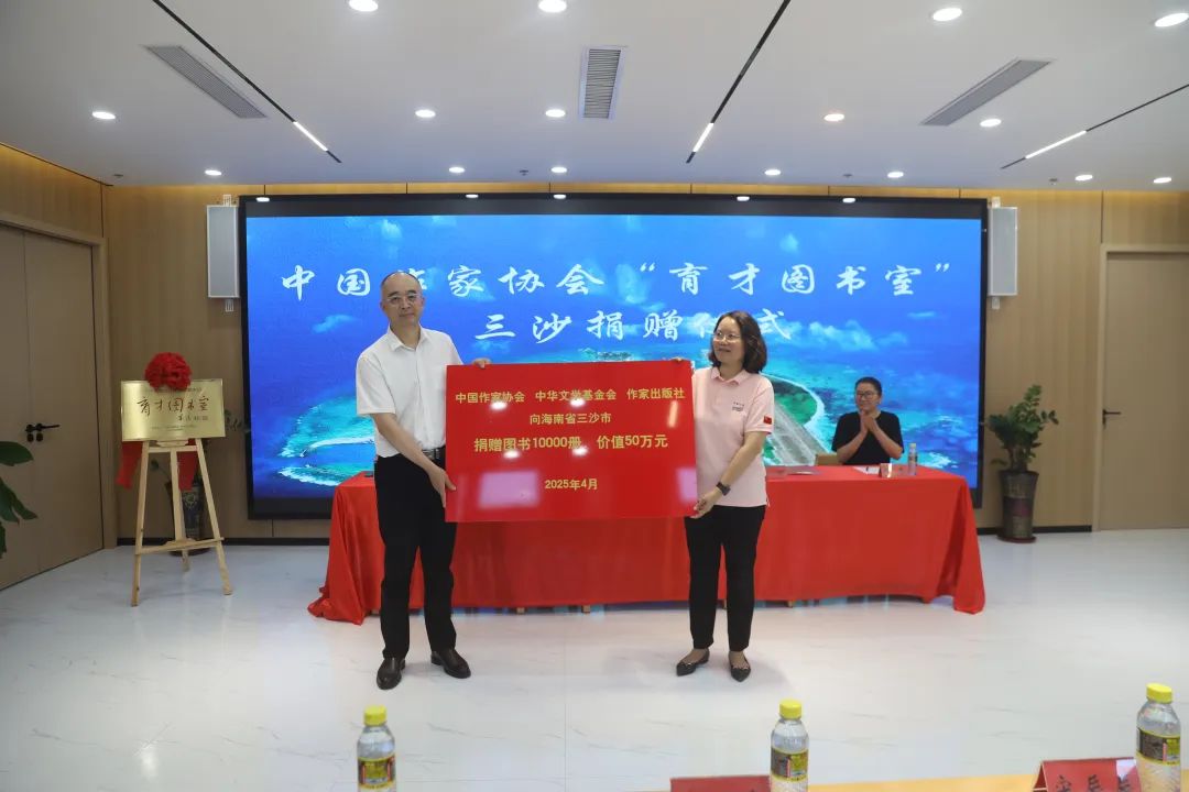 4月23日是第三十个世界读书日,电竞竞猜官网、中华文学基金会和作家出版社在三沙开展“育才图书馆”捐赠仪式并为“育才图书室”工程项目揭牌。电竞竞猜党组成员、副主席、书记处书记吴义勤,三沙市委副书记、宣传部部长江南参加捐赠仪式。