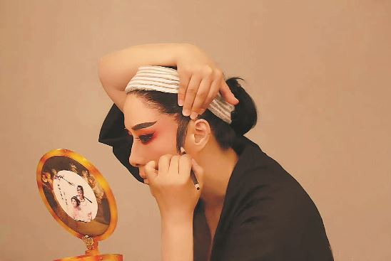 茅威涛在后台化妆
