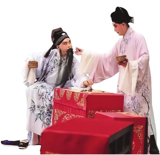 就戏剧文学而言,与表层的“情节性”相比,饱含人之生命情感的文学性或许更具“戏剧性”。作为编织故事的高手,罗周并不满足于故事情节的跌宕起伏,她把所谓的“情节”拆分为“情”与“节”:迅速进入某个“节点”,完成戏剧场景之布置、营造,然后让人物充沛、丰满地表达“情感”,而不是把笔墨时间放在对故事内容的浅层叙述上。在《世说新语》之“谢公故事”系列的《候门》一折中,主人公谢安根本没有出现在“明场”,观众却能从郗超和桓温对其一波三折的反复拒迎中看到了他的高洁风姿;郗超的杀机尽显和桓温的迟疑不决铺垫得层层叠叠,无不是为了突出谢安的伟岸人格,可谓不着一字,尽得风流。在《举将》中,郗超和谢安对褚太后请旨问疾,在药方的堆砌背后是双方对战局的激辩,反复双关、言此意彼,最后在郗超请将、激将的博弈中完成两人内举不避亲、外举不避仇的刻画。在《破局》中,门人的一报再报、棋局的一让再让,无不递进和深化着人物的情感层次;当谢安先后拆军书看军书,完成“小儿辈大破贼”的最后交代后,第三次的扬州来书又让剧情陡转,在完美的塑造谢安之后又给郗超涂抹上了深沉博大的色彩。