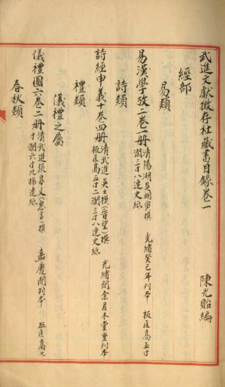 陈光贻编《武进文献征存社藏书目录》