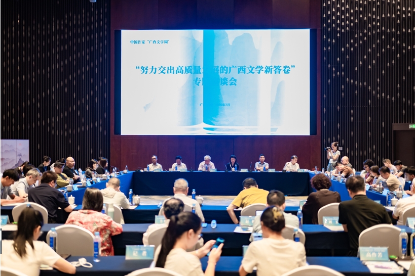 在“努力交出高质量发展的广西文学新答卷”专题座谈会上,受邀作家与广西本地作家代表齐聚一堂,共同探讨新大众文艺视野下广西文学发展的未来。座谈会由广西作协党组书记、副主席程小华主持。