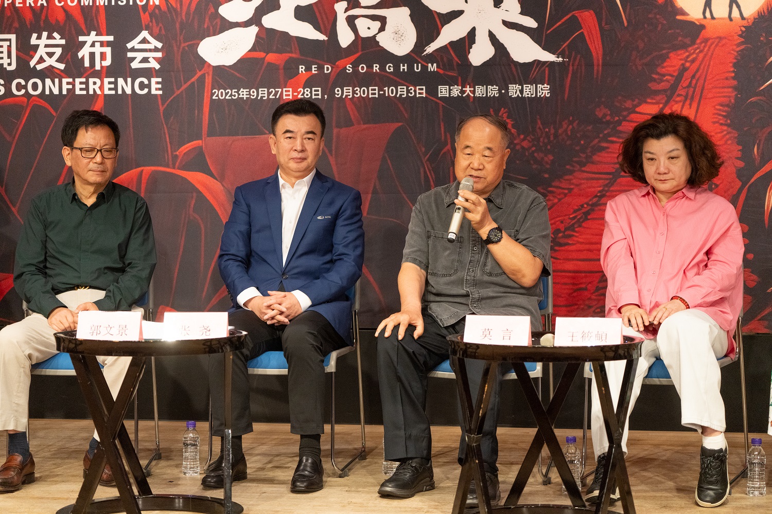 国家大剧院原创民族歌剧《红高粱》即将于9月27日至10月3日迎来世界首演。国家大剧院副院长张尧,歌剧《红高粱》编剧莫言、作曲家郭文景、导演王筱頔等核心主创,与宋元明、乌列热、郭子照、王冲等主演一同出席发布会,详细解读歌剧《红高粱》创作历程及精彩看点。《红高粱》是国家大剧院创作推出的第23部原创歌剧,以文学经典的全新舞台呈现,歌颂永恒炽热的民族精神。