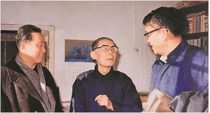 1982年,夏衍(中)与电影导演谢晋(右)、上海电影制片厂厂长徐桑楚(左)在一起讨论剧本