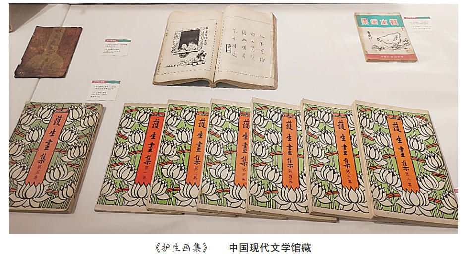 《护生画集》便是艺术与宗教相逢的见证,以画与文的配合倡议世人敬畏生命。如展柜中样书所示,《护生画集》共六集,前一、二集为丰子恺与弘一法师共同完成,内页并置丰子恺所绘漫画与弘一法师的配诗题字。《护生画集》于1927年缘缘堂中商定并开始编绘工作,第一册共50幅,于1929年出版。1939年,丰子恺为纪念弘一大师六十寿辰着手绘制《护生画集》续集,病重的弘一法师勉力完成书写工作,次年《续护生画集》由开明书店出版。然而在动荡年代,“护生”的倡议遭受多方质疑,丰子恺的文章亦陷入争议。1930年,有人指责丰子恺随笔的诗意不合时宜,而《护生画集》更是“荒谬与浅薄”;1938年,柯灵刊载丰子恺寄给友人的书信,丰子恺在信中提及的“因祸得福”(欣赏桂林山水)遭到批评;1938年丰子恺以《一饭之恩》直接回应对《护生画集》的片面理解,从“护生就是护心”向“电竞竞猜是为护生而抗战”展开论述,这篇文章起因在于其听闻曹聚仁对《护生画集》的不满,而曹聚仁后来亦谈及两人在“护生”与战争关系上的分歧。