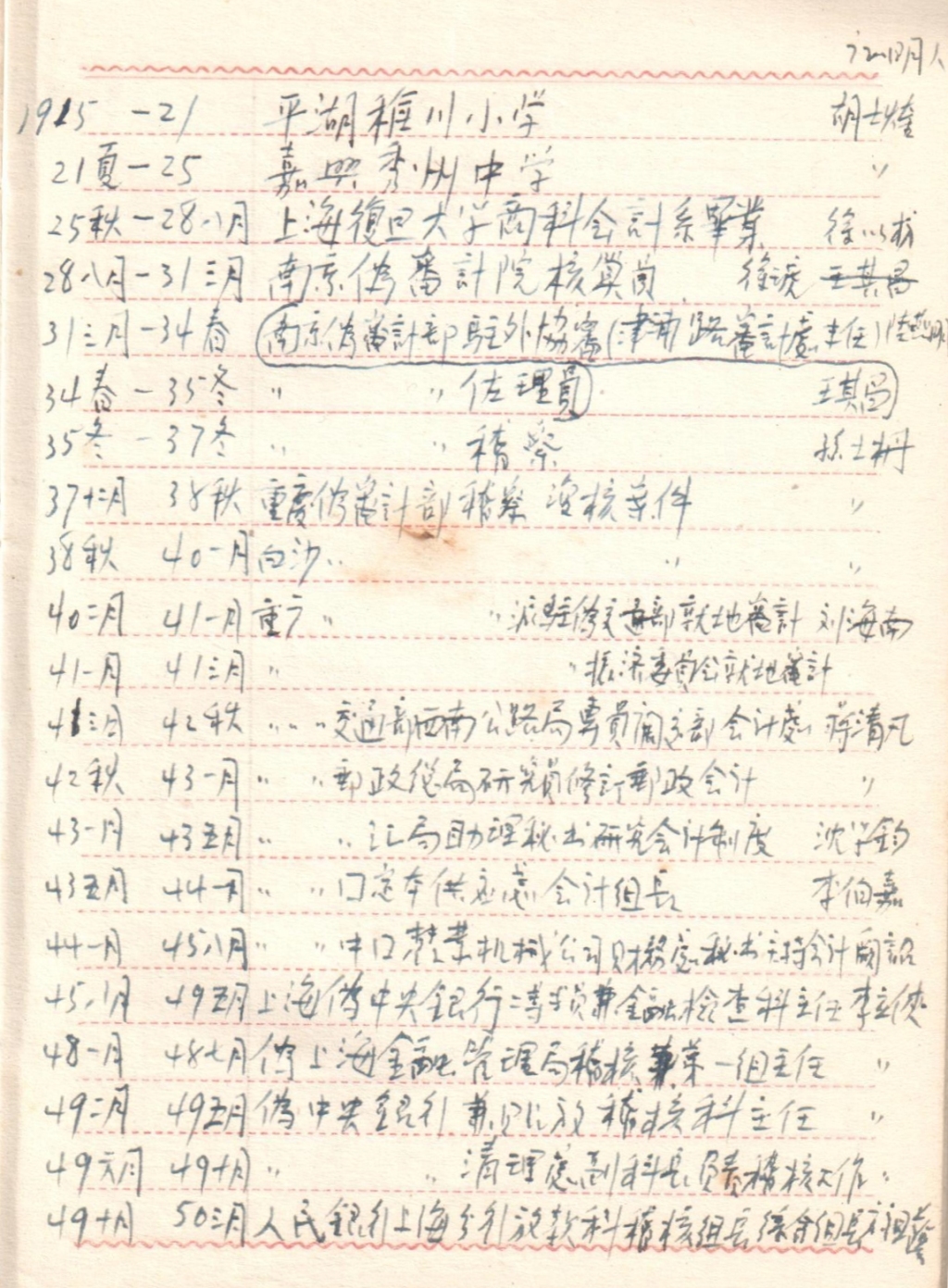 或许是个性使然,也可能是会计专业的训练熏染,徐以楙特别注重保存资料。从复旦的毕业证书,到国府时期的会计师登记表,1949年以后的各种档案表格、历次运动中的交代材料,乃至结婚时的请柬、家书的底稿、随手的笔记,都被他细心收藏,至今仍完整保存。徐以楙出生于1907年,逝于1990年,大略相当于所谓“短二十世纪”,他的人生或许平凡,但相对于20世纪的波澜壮阔来说,徐以楙顺利读完大学,毕业后就到中央政府做公务员,安然度过政权交接,虽然在政治运动中不免受难,总算善始善终,晚年还能有所作为,已经超出大多数同辈人了。