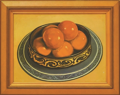 许幸之的静物画偏爱描绘陶瓷与水果植物。他选择陶瓷,不仅因为它是中国的象征,更因为陶瓷在光线下所呈现的色泽,正是他在油画语言中国化探索中亟欲解决的核心问题。陶瓷表面有釉,反光强烈,色泽又极为鲜艳,这种独特质感在光影中所形成的视觉感受,成为许幸之努力捕捉与表现的对象。对许幸之而言,若能以油画的语言完美再现中国陶瓷的质感色泽,将会是油画在新中国语境下实现民族化的重要进展。