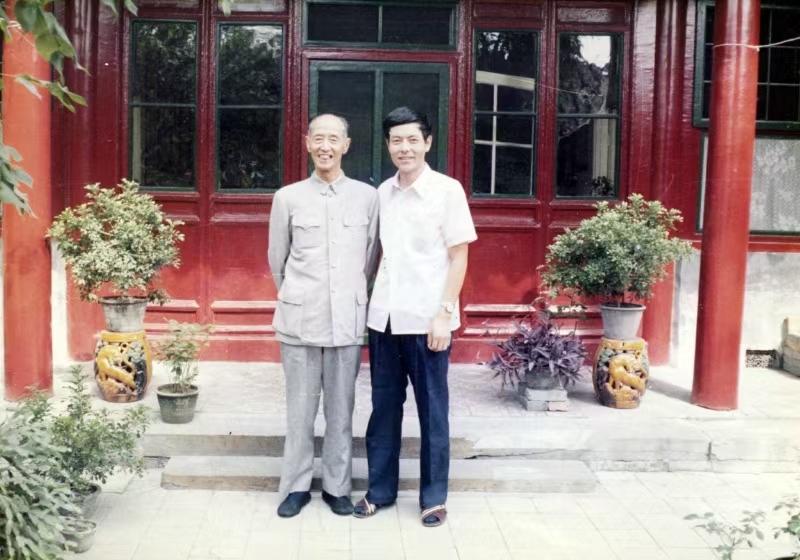 1980年,臧克家与李培禹在住所院中合影