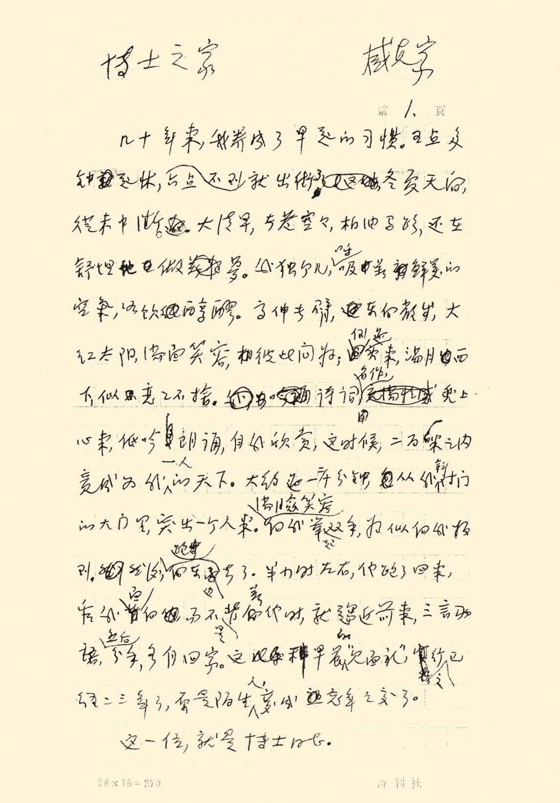 臧克家散文《博士之家》手稿