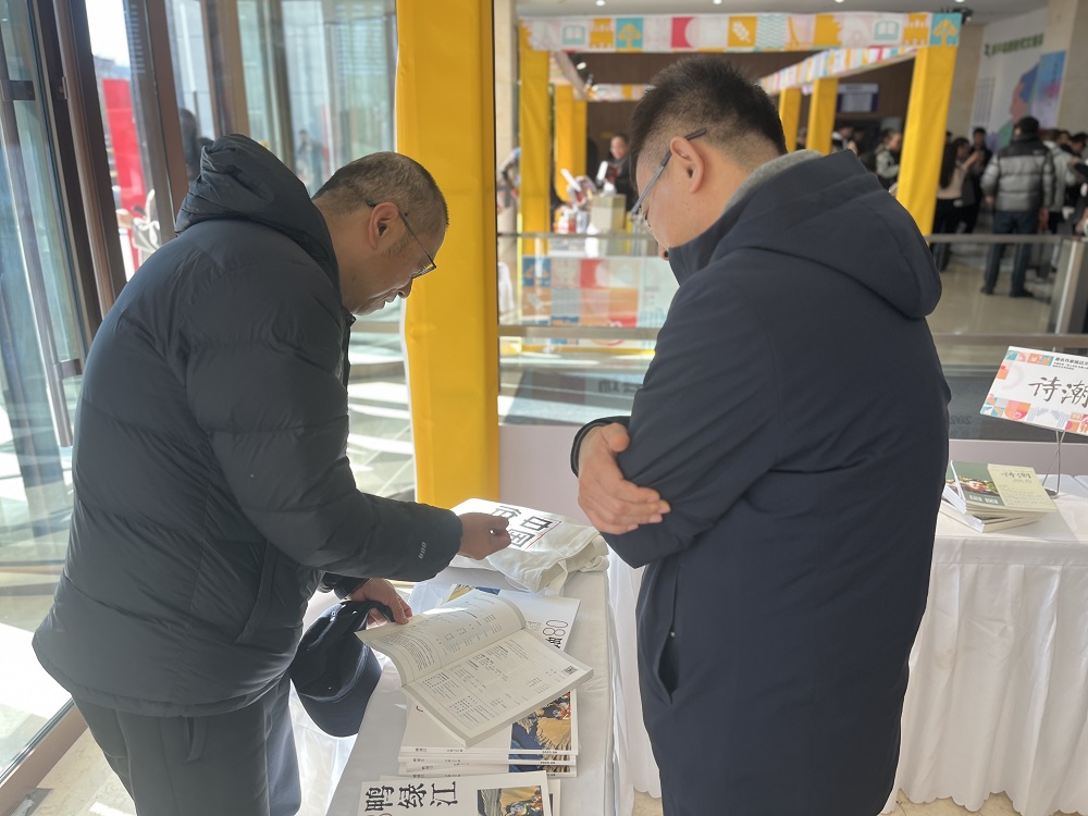 启动仪式后,嘉宾们来到热闹的文学市集。文学市集由主舞台区、文学图书展区、文学期刊展区、文创非遗区与读者互动区构成。读者追着作者求签名、交流阅读心得的画面随处可见,浓厚的互动氛围和文艺活力在市集间不断涌动。