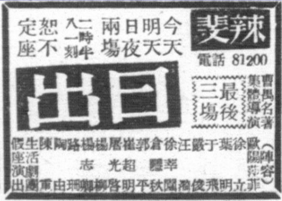 图二:《申报》的《日出》演出广告,1946年7月27日
