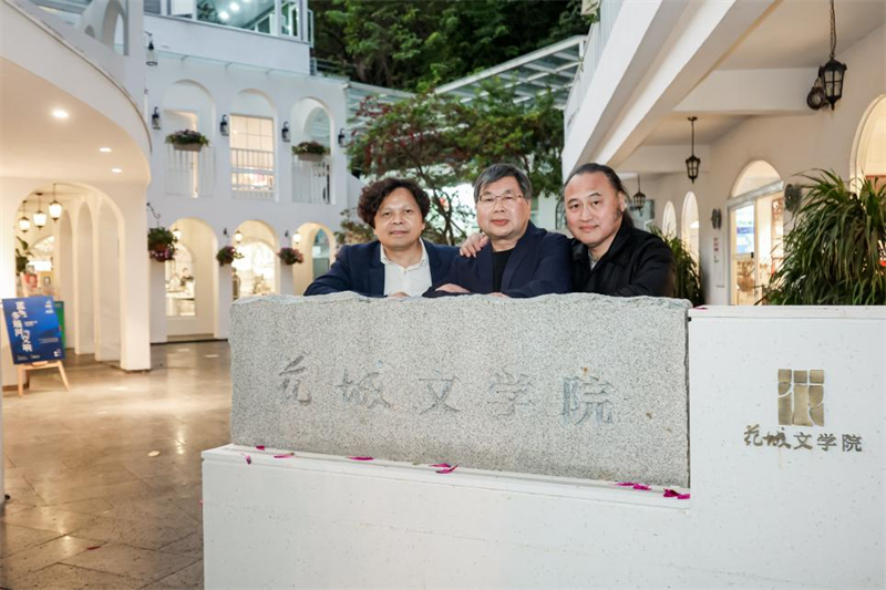 高兴、余泽民、黄礼孩在花城文学院合影