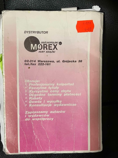 (注:舞台上所使用剧本的封底、版权页和封面。封底的价签上标记着“44000”,版权页标注:“根据波兰国民教育部现行教学大纲——中等学校一年级的必读文学作品”。)