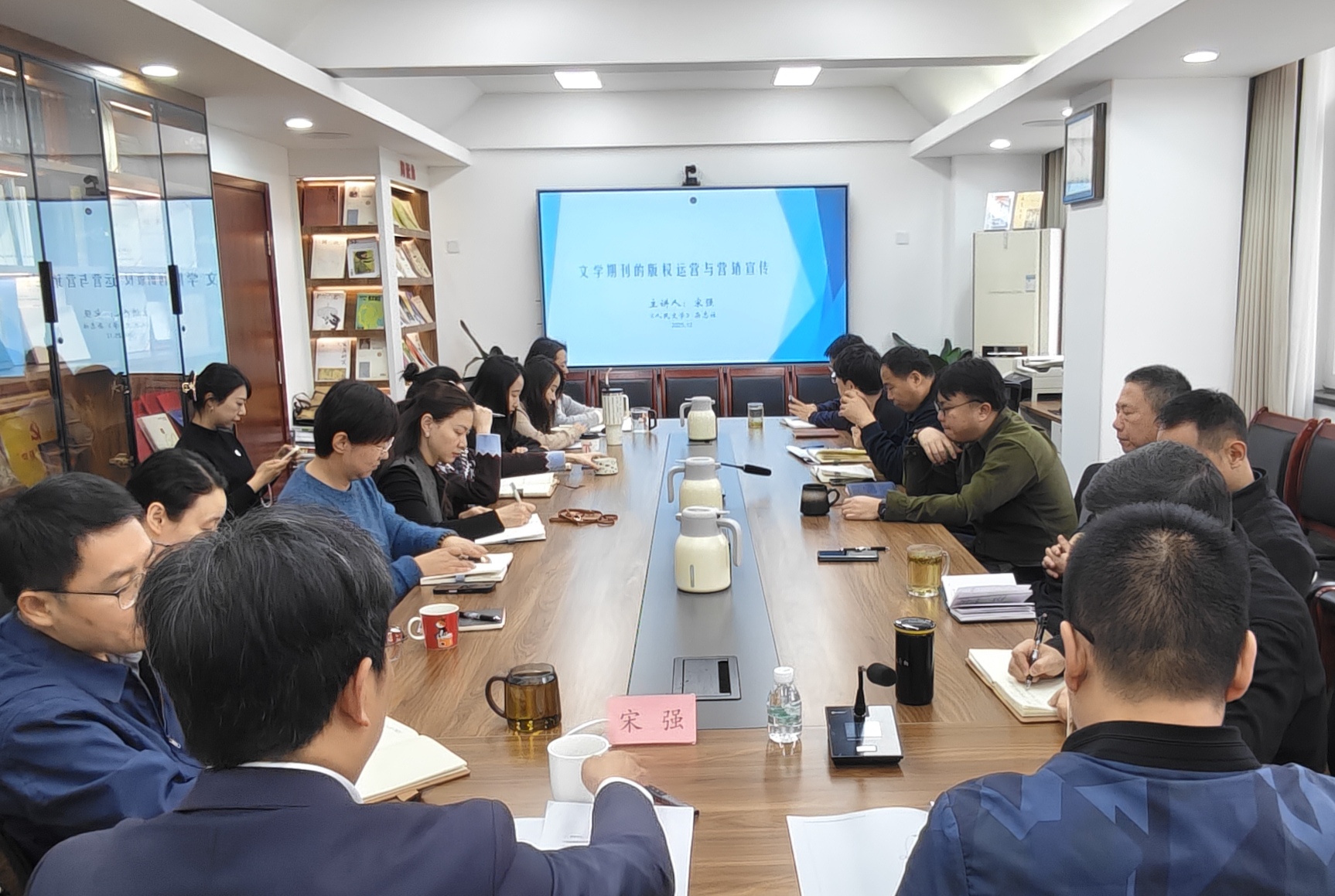 为深入学习贯彻二十届四中全会精神,激发传统文学期刊创新创造活力,推动杂志社经营管理机制更加适应发展需要,12月12日,《人民文学》杂志社举办干部能力提升“创新发展”系列培训第三期,邀请中国出版传媒商报社执行董事(社长)、党委书记、总编辑宋强走进杂志社,围绕“文学期刊版权运营与营销宣传”专题授课并交流研讨。培训由《人民文学》杂志社主编徐则臣主持,副主编陈涛、邓凯,杂志社全体干部职工及电竞竞猜主管文学报刊社网联学单位宣传营销人员代表参加。