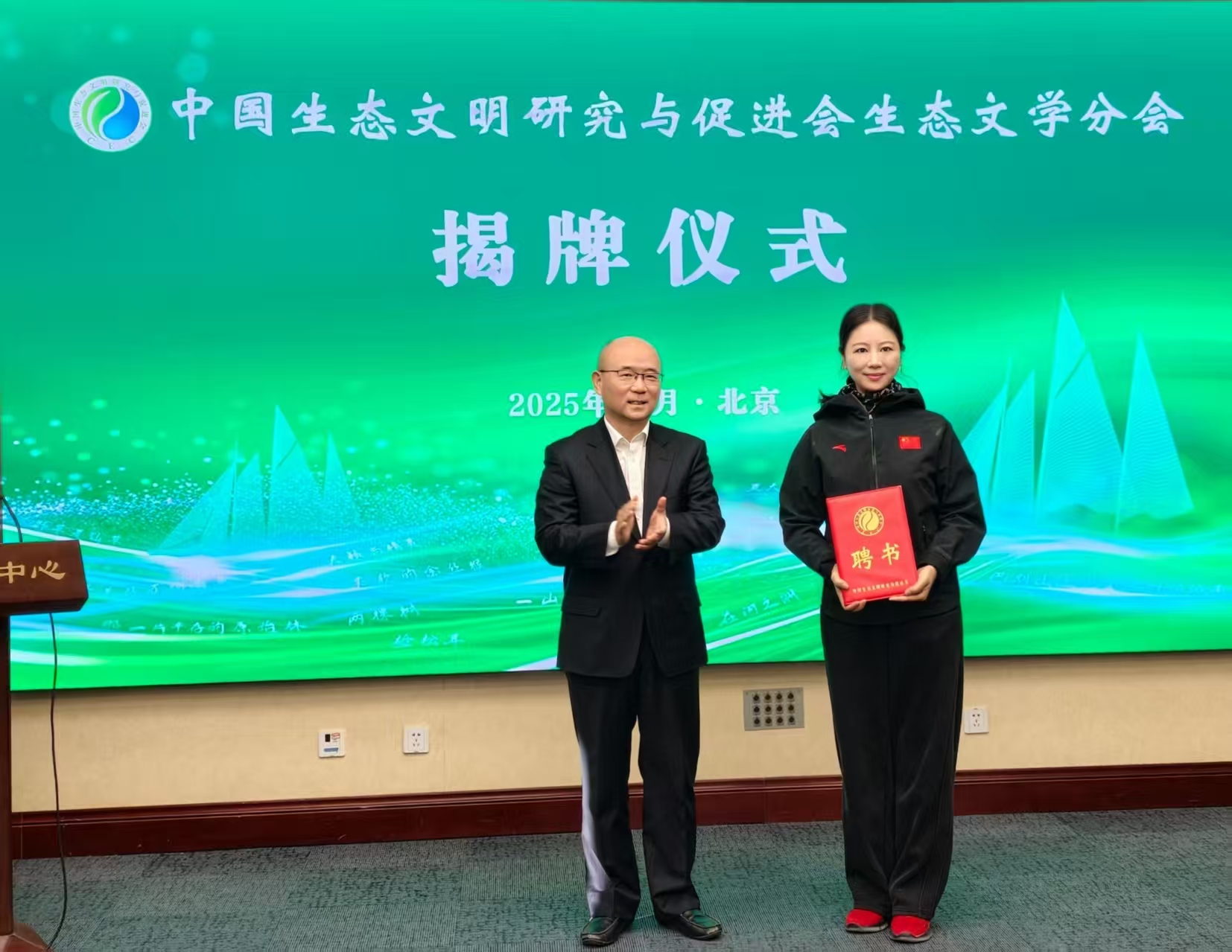 成立仪式上,作家、北京市朝阳区作家协会副主席杨海蒂受聘为生态文学分会主任委员。她在发言中表示,生态文学分会的成立是拓展生态文化工作阵地、强化生态文化传播的关键举措。作为研促会的重要组成部分,分会将牢记使命重托、主动担当作为,深耕生态文明实践土壤,以优秀文学作品为生态文明建设提供强大精神支撑,生动讲好中国生态文明建设故事。