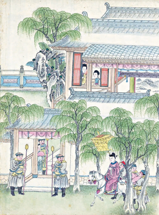 清代禹之鼎绘《会真全图(西厢故事图卷)》(局部)