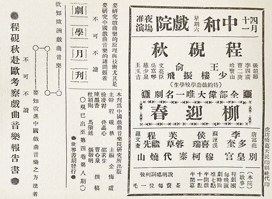 《剧学月刊》力荐程砚秋考察报告书。