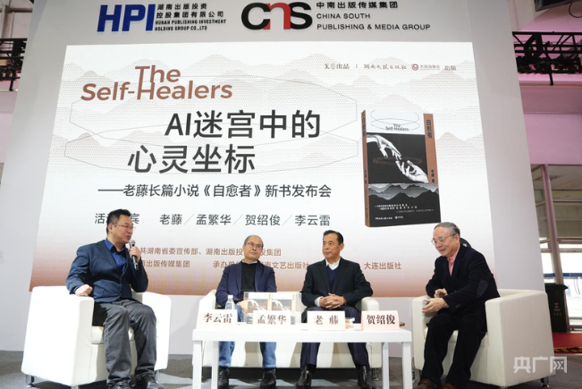 近日,由芙蓉杂志社策划、湖南文艺出版社、大连出版社联合出版的作家老藤最新长篇小说《自愈者》发布会在第38届北京图书订货会中南传媒展位活动区举办。发布会由大连出版社等单位承办,以“AI迷宫中的心灵坐标”为主题,是本届北京图书订货会中南传媒集团的重要活动之一。