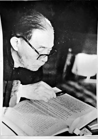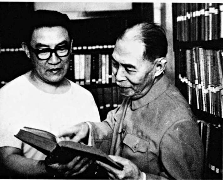 茅盾晚年在北京住所起居室撰写回忆录查阅资料(儿子沈霜与茅盾)。作者供图