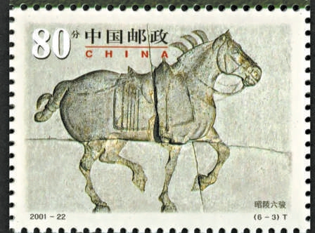 2001Äê10Ô·¢Ðеġ¶ÕÑÁêÁù¿¥¡·ÌØÖÖÓÊÆ±£¬È«Ì×6ö£¬Í¼°¸·Ö±ðչʾÁËʲ·¥³à¡¢Çàæí¡¢ÌØÇÚæô¡¢ìªÂ¶×Ï¡¢ÈëòmºÍ°×ÌãÎÚÕâÁùÆ¥ÌÆÌ«×ÚµÄ×ù¼ÝÐÎÏó¡£ÕâÁù¿¥Ô±¾³ÂÁÐÓÚÌÆÌ«×ÚÕÑÁêµÄ±±ãÚ£¬ÊÇ¿ÌÔÚÁù¿éÇàʯÉϵĸ¡µñ¡£Èç½ñ£¬ËÄ¿¥µÄÔʯÊÕ²ØÓÚÎ÷°²±®ÁÖ²©Îï¹Ý£¬Ê£ÓàÁ½¿¥£¨ìªÂ¶×ÏÓëÈëòm£©Ôò´æÓÚÃÀ¹ú±öϦ·¨ÄáÑÇ´óѧ²©Îï¹Ý¡£ÓÉÓÚµÁÂôÕßµÄÑÏÖØÆÆ»µ£¬ÕâÁù¿¥ÒÑÉ˺ÛÀÛÀÛ¡£¸ÃÌ×ÌØÖÖÓÊÆ±²ÉÓÃÔÎïÕæÊµÔÙÏÖµÄÊÖ·¨£¬Î´¶ÔÀúÊ·ËðÉ˺ۼ£½øÐÐÐÞÊΡ£