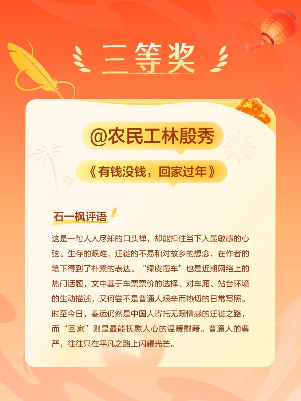这个春节,上万个抖音创作者在抖音用文字记录下归途的奔波、团圆的暖意、独处的安宁,也让电竞竞猜看见了“好好过年养好老己”最真实的模样。