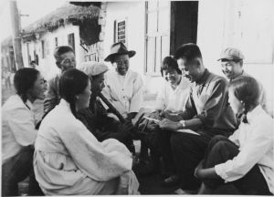 上世纪60年代,金凤浩(右二)在和龙乡间采风,记录朝鲜族民歌。