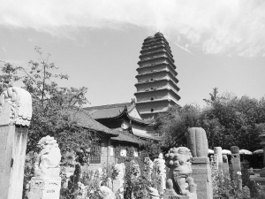 如今,当年有着11个院落气势的荐福寺只余塔院,唐代的遗存中也仅留下为数不多的几个柱础,但历史所赋予小雁塔的文化脉落却延续传承至今。行走于千年古树掩映的小雁塔塔院各殿宇之间,明清时期的文化气息透露出小雁塔的发展轨迹。由南至北依次排列的南山门、钟楼、鼓楼、慈氏阁、东西小亭、大雄宝殿、藏经楼、方丈殿、白衣阁等单檐或重檐的歇山式建筑,因历史原因已失去它原本的佛教用途,但建筑本身仍保存得十分完好。这些佛寺特有建筑,是体现小雁塔丝路文化价值特征的一个重要载体。