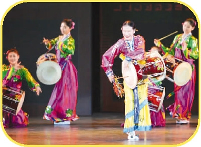 年近80岁的著名舞蹈家崔善玉(前)在表演