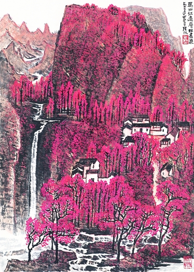 在父亲个人的山水画创作乃至中国山水画的发展历程中,《万山红遍》都被视为极具个人风格的作品。父亲并未用过去画作的程式去表现一个新的题材,而是根据新的题材去发现、探索一种新的表现语言和画面结构。正如父亲提出的“可贵者胆,所要者魂”,“胆”是大胆尝试和突破的创新之“胆”,“魂”是创作者悉心感受和凝精聚神之“魂”。父亲一直在探索山水画表现的新的可能性,不断拓展着传统山水画所表现的内容、力度与深度。