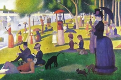 修拉的 《大碗岛星期天的下午》 中,藏着与《阿尼埃尔浴场》的对比