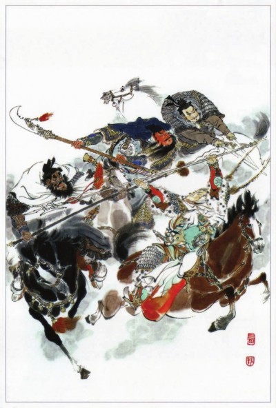 “三国”“水浒”最早来自大众说书的通俗话本,今天却成了经典名著。可见通俗之于低俗,虽一字之差,却有文学与非文学、甚至文明与粗野的云壤之别。上图为戴敦邦绘 《三国演义》、下图为丁筱芳绘 《水浒传》。(资料图片)