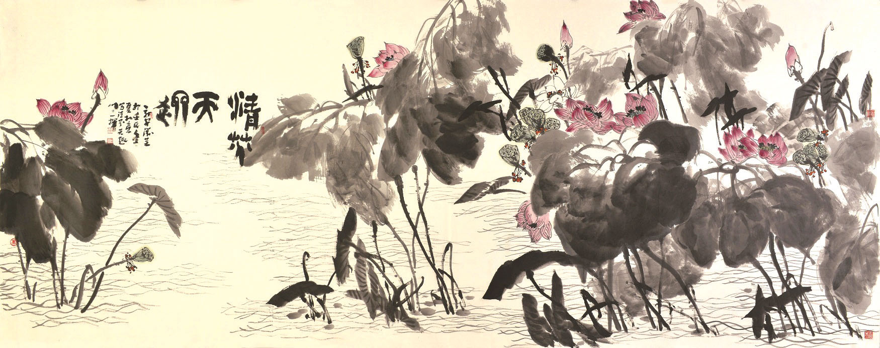 由于家庭的关系,滋芜很早就结识了林风眠,并得以亲耳聆听他的教诲。滋芜兼画油画和传统中国画——以油画作为主题性的人物画,以水墨等传统形式画山水,多多少少也有林风眠的影子。但人到中年以后,他逐渐对中国传统文化产生了浓厚的兴趣,把自己的大部分精力用在了传统水墨上,《清芬天趣》《清香》《“和美”系列2》等大型作品,破除了传统水墨画略施淡色的程式,突出了人对大自然视觉的新鲜感,在方形的构图中创造出令人神往的意境。