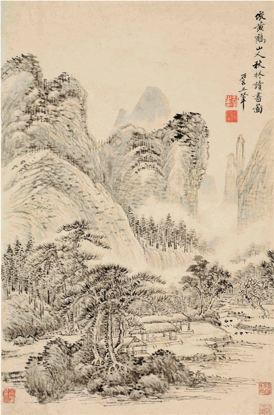 董其昌,以佛家禅宗喻画,倡“南北宗”论,为“华亭画派”杰出代表。其画及画论对明末清初画坛影响甚大。王时敏是“四王”之首,又是“娄东派”的创始人,少时得董其昌指授,取法“元四家”,以黄公望为宗,晚清娄东画派代表画家与评论家秦祖永曾在《桐阴论画》中评王时敏:“运腕虚灵,布墨神逸,随意点刷,丘壑浑成。”王鉴为“虞山派”之首,从董源、巨然处受益,仿古作品更见功力。在山水画创作上讲究布局,笔墨处处有传统、有来历。王翚具有坚实的临摹功底,“仿临宋元无微不肖”,“下笔可与古人齐驱”,又能“集古人之长,尽趋笔端”。王原祁最具个人特点,他以黄公望的浅绛为基础,所画山水有“熟而不甜,生而不涩,淡而弥厚,实而弥清”的赞誉。