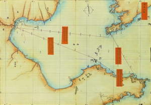 《渤海阅师图册——阅师记程》,记载醇亲王阅兵的行船路线及里程数。北京故宫收藏