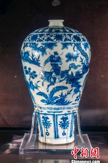 国宝级文物“萧何月下追韩信”梅瓶,自40多年前首度公开展示以来,公众就只能看到“萧何”这一面。 吴小宝 摄