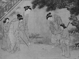 与此同时,捶丸这项运动也颇受女性青睐。在明代画家杜堇所绘《仕女图》中,即有捶丸运动的场面。画中女性头梳高髻、宽袍大袖、有侍女陪伴,颇为怡然。