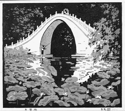 图为古元版画作品《玉带桥》。