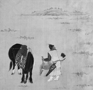 《乾隆皇帝射猎图》轴(局部) 清