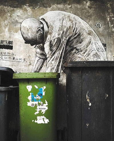前 齐兴华在杂乱的垃圾站画上拾荒老人,却被物业抹去这一缕温情,然而垃圾站的环境并没有改善。