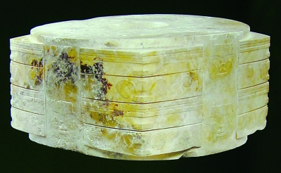 良渚文化的史前先民则用玉琮(下图)的平面形状作出了回答。张光直先生认为玉琮的内圆外方是象征了古人的天圜地方、上下贯通的天地观。红山文化晚期的牛河梁遗址“积石冢”又是一例。积石冢主要部分为2座三环石坛。据学者考证“三环石坛”的实测直径与《周髀算经》盖天图式的数据一致。
