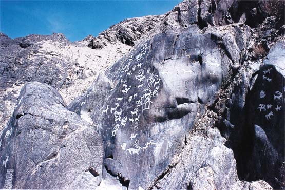 新疆且末县莫勒恰河东岸的昆仑山岩画