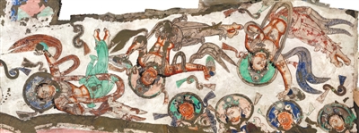 《秦王破阵乐》和《霓裳羽衣曲》与龟兹乐舞的这种紧密联系,可谓是龟兹乐舞东传中原的真实写照。龟兹乐舞东传中原,早在魏晋时期就已经开始。南北朝时,北朝诸国都非常喜爱龟兹乐。北齐的文宣帝高洋经常在演奏龟兹乐的时候,亲自击鼓伴奏。这一时期,龟兹苏祗婆“五旦七声”传入中原,对汉地乐理的变革产生了直接的推动作用。隋朝建立后,隋文帝制定《七部乐》,龟兹乐位列其中。唐代改革我国古代乐舞,唐玄宗时,将所有宫廷燕乐划分为“坐部伎”和“立部伎”,在二部伎中大多数的乐曲用的是龟兹乐。龟兹乐舞对中原乐舞的广泛影响,在出土的许多唐代文物上得到反映,如西安东郊苏思勖墓壁画上的乐队演奏图,实际上就是龟兹乐队的缩影。(清 风)