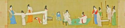 《捣练图》是中国唐代名画,是一幅工笔重设色画,表现贵族妇女捣练缝衣的工作场面。系盛唐时的一幅重要的风俗画,对后世绘画风格有重大影响,是唐代仕女画中取材较为别致的作品,系唐代画家张萱之作。画作原属圆明园收藏,1860年“火烧圆明园”后被掠夺并流失海外。