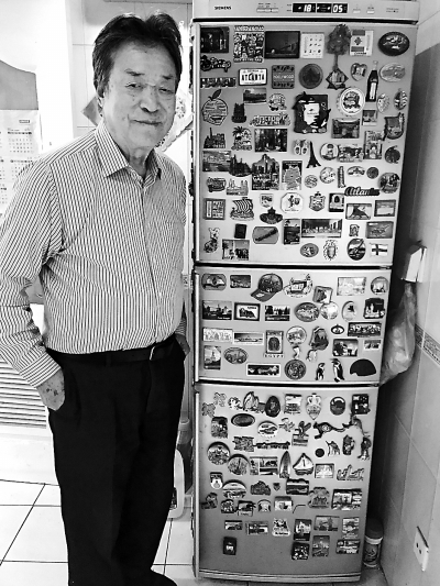 苦日子过了很多年,现在的李光曦也学会了享受生活,今年春节后他在海南住了40天,夏天又在山东住了一个月。李光曦最享受的是出去旅游,他家的冰箱上整整贴了三面的冰箱贴(上图)。每一个冰箱贴都是他货真价实从当地带回来的,因为贴得太满了以至于影响了冰箱的散热,他才把一部分转移到了别处。