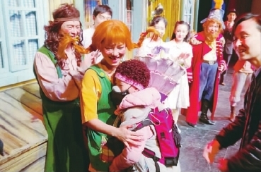 《皮皮·长袜子》演出后,唐妍与白血病女孩欢欢拥抱 中国儿童艺术剧院提供